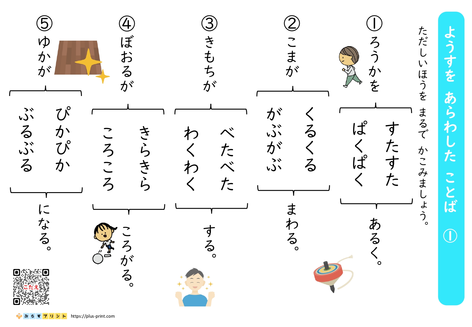 「走る」だけでなく「ぱくぱく走る」「ぐんぐん進む」と表現できるようになることで、語彙力・読解力・表現力の土台が育ちます。